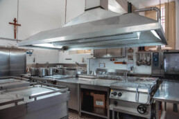 Nei tempi remoti tutti i prodotti alimentari venivano dal ‘contado’, quindi giornalmente arrivavano uova, formaggi ortaggi, latte e pollame e fino agli anni 80 anche i suini e vitelli venivano allevati nelle nostre stalle; anche nei periodi bui, quando la città languiva nella miseria, gli ospiti della nostra Fondazione, hanno sempre potuto contare su pasti abbondanti e di qualità. Allora le cuoche erano donne di casa, per la maggioranza vedove; i fuochi erano dapprima a legna e poi a gasolio.